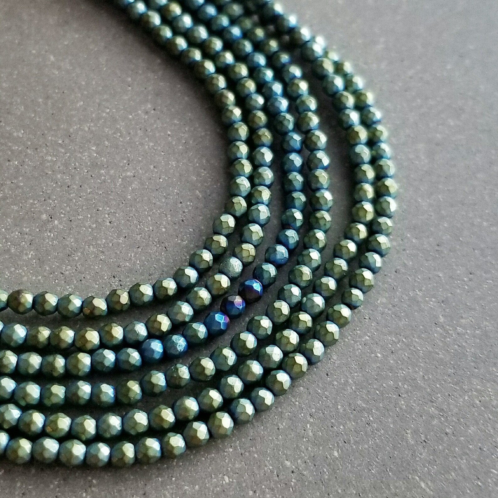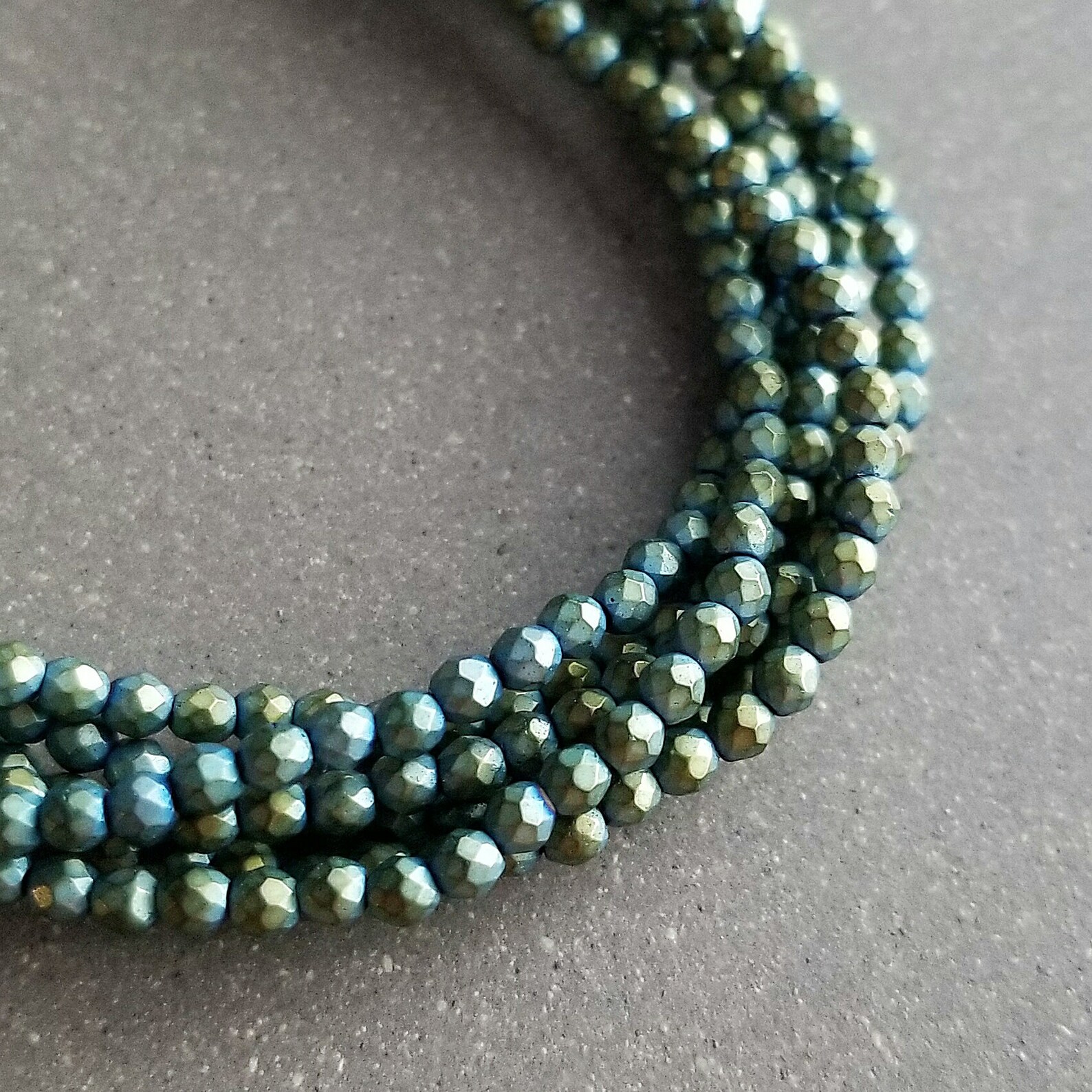 Hematyt kolor syrenka zielona 2mm fasetowany , trwała powłoka.