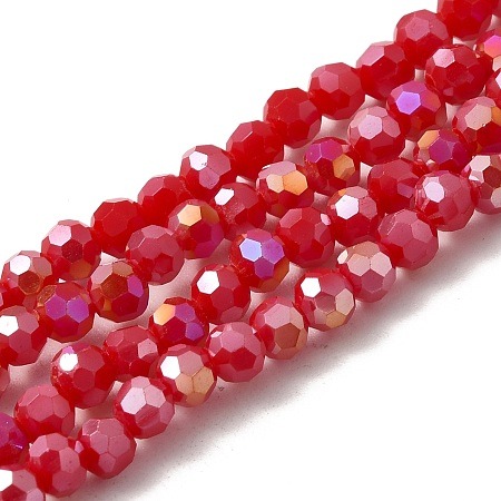 Kryształki – szklane koraliki perłowo-połyskowe czerwone fasetowane 4mm sznur/+-100szt