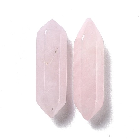 Kwarc różowy w postaci szlifowanych stożków, z obu stron zakończone szpicem. Kamienie bez otworu nawierconego.