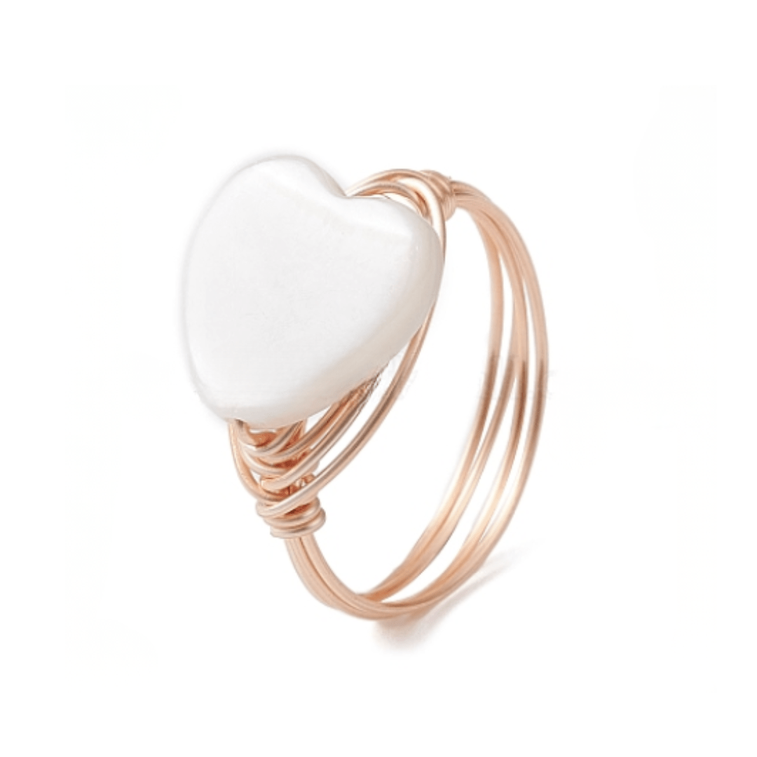 Pierścionek miedziany z sercem z masy perłowej