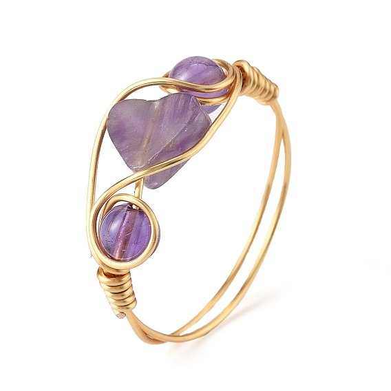 Pierścionki z koralików z naturalnego ametystu, kwarcu różowego i czerwonego jaspisu, owinięte drutem miedzianym.