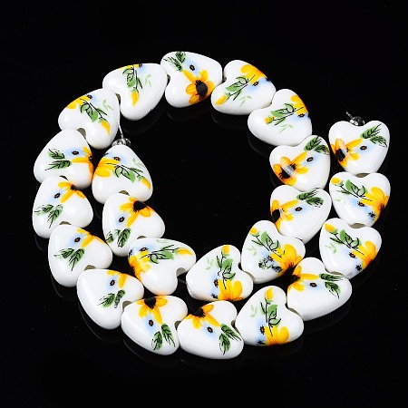 Ręcznie robione koraliki ceramiczne z porcelany w kształcie serca słoneczniki.