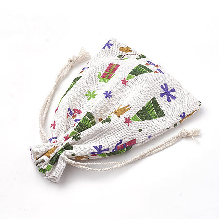 Woreczki pakunkowe z poliestru (bawełny poliestrowej) ze ściągaczem, z nadrukowanym reniferem i choinką, kolorowe
